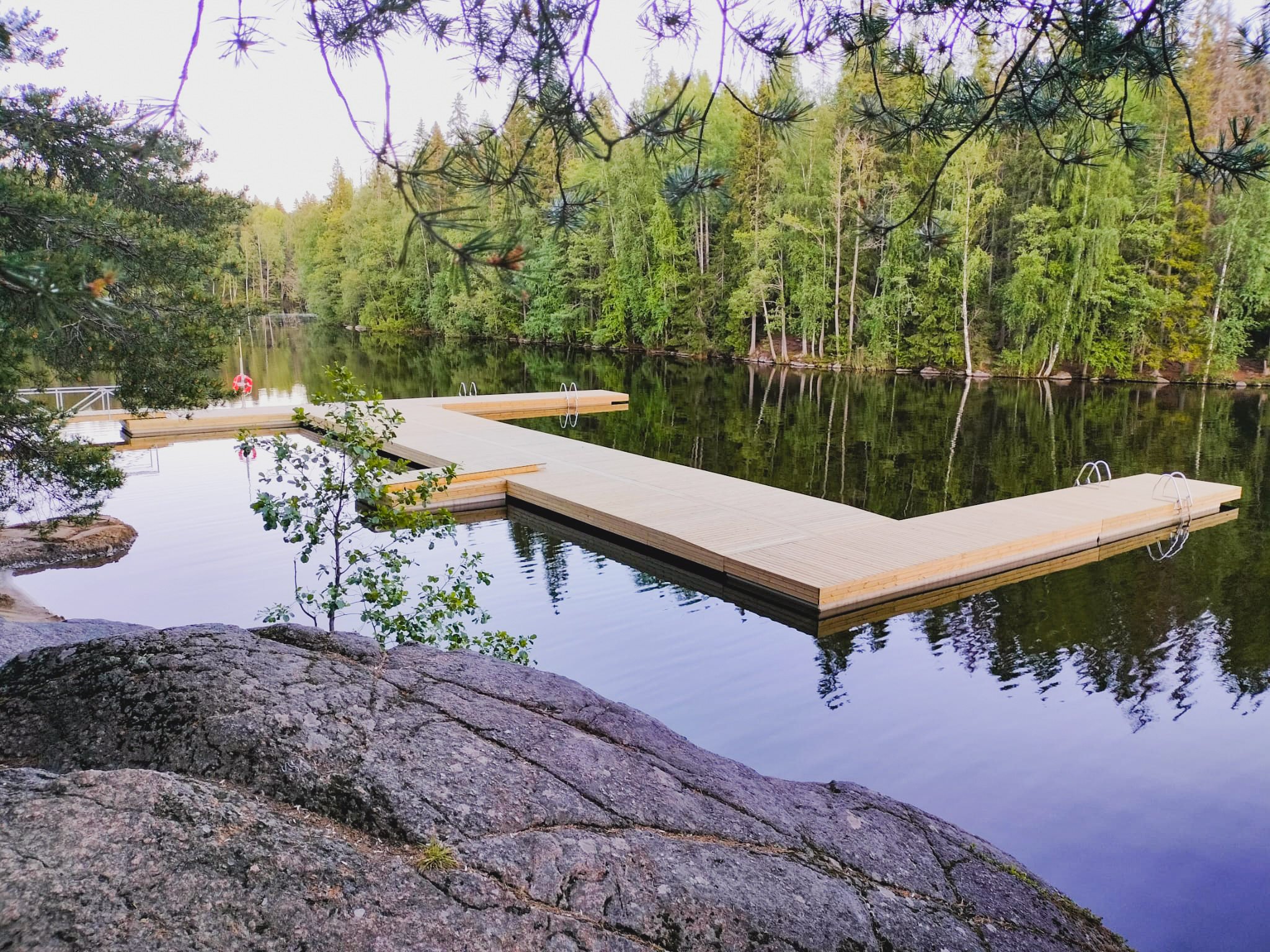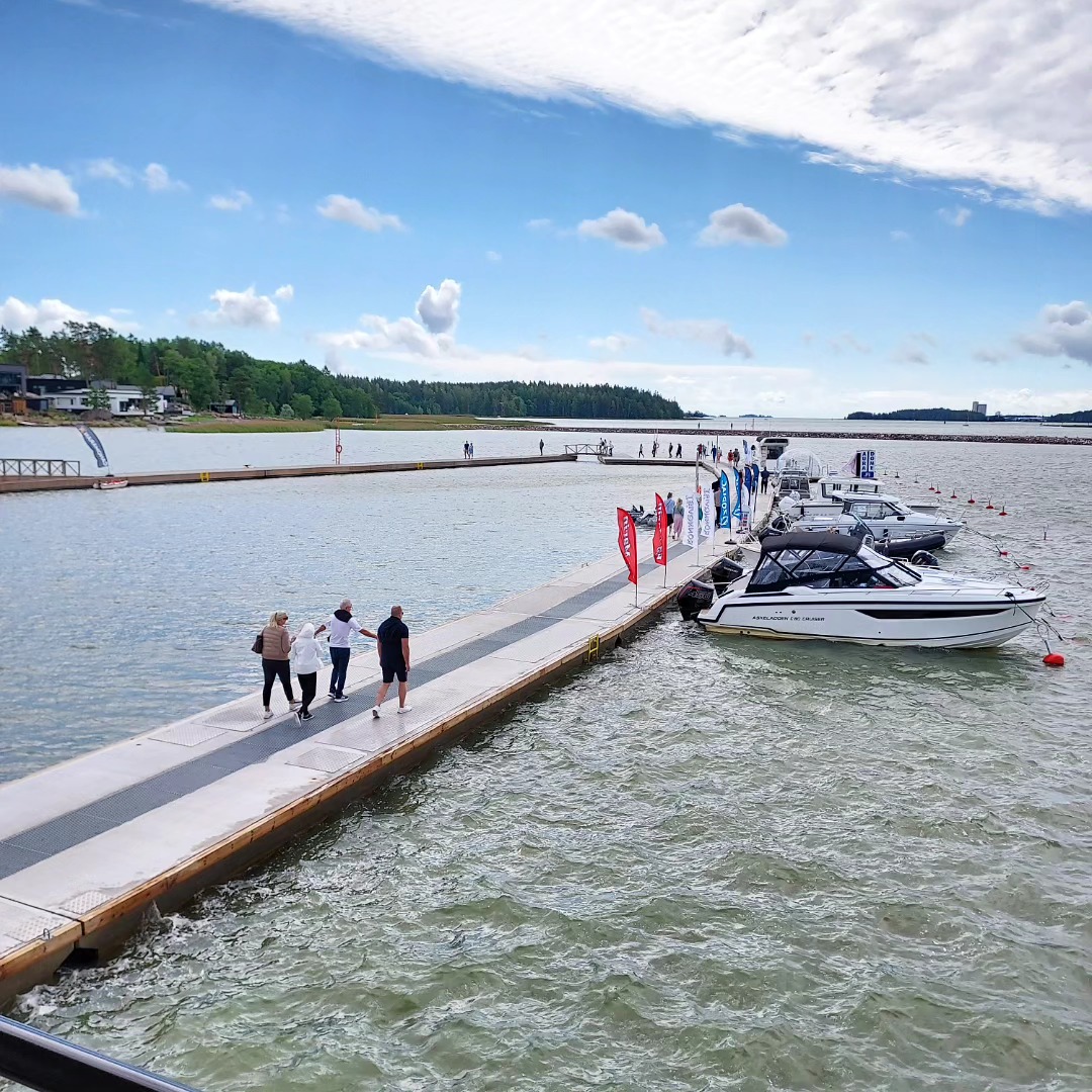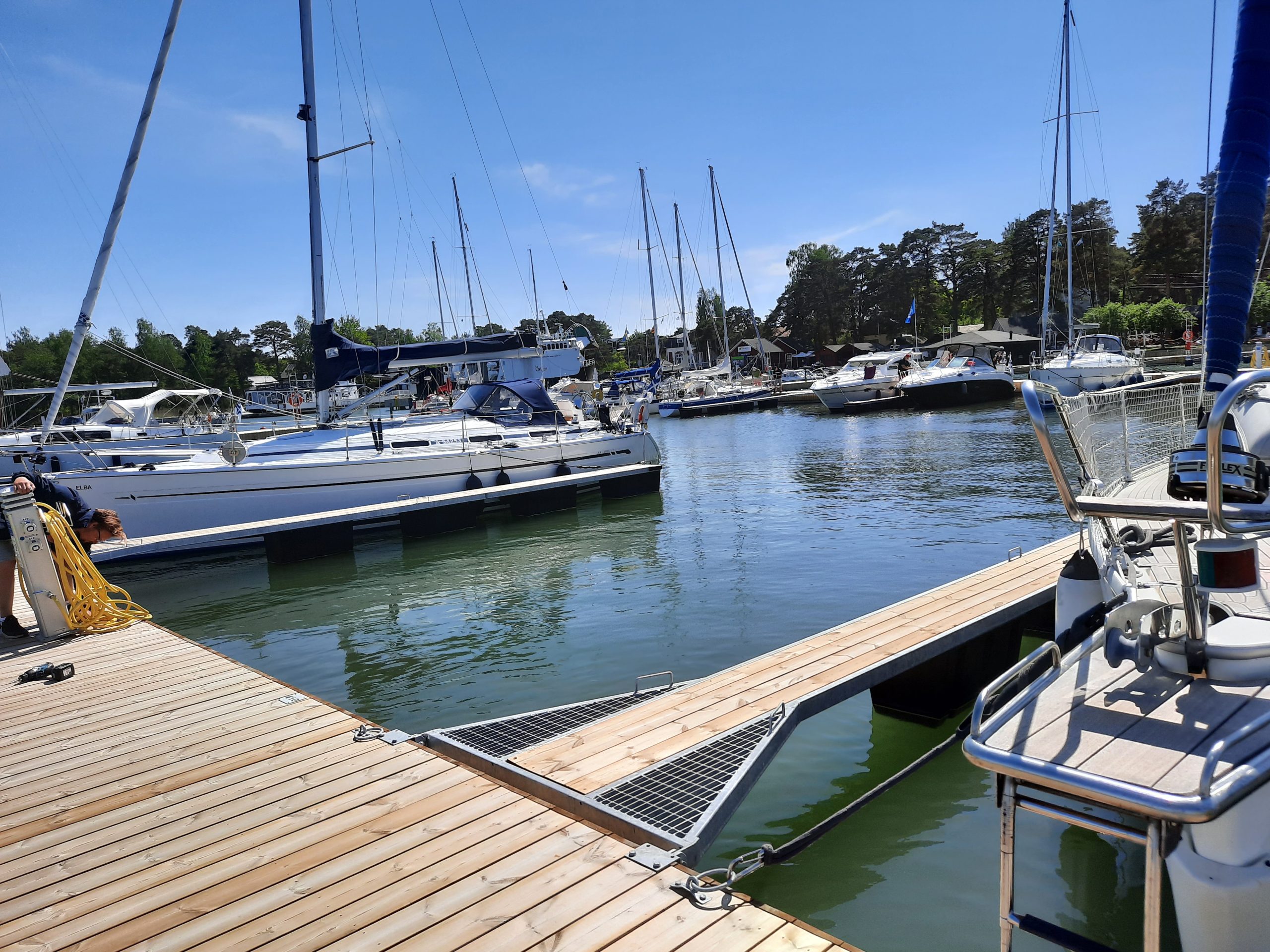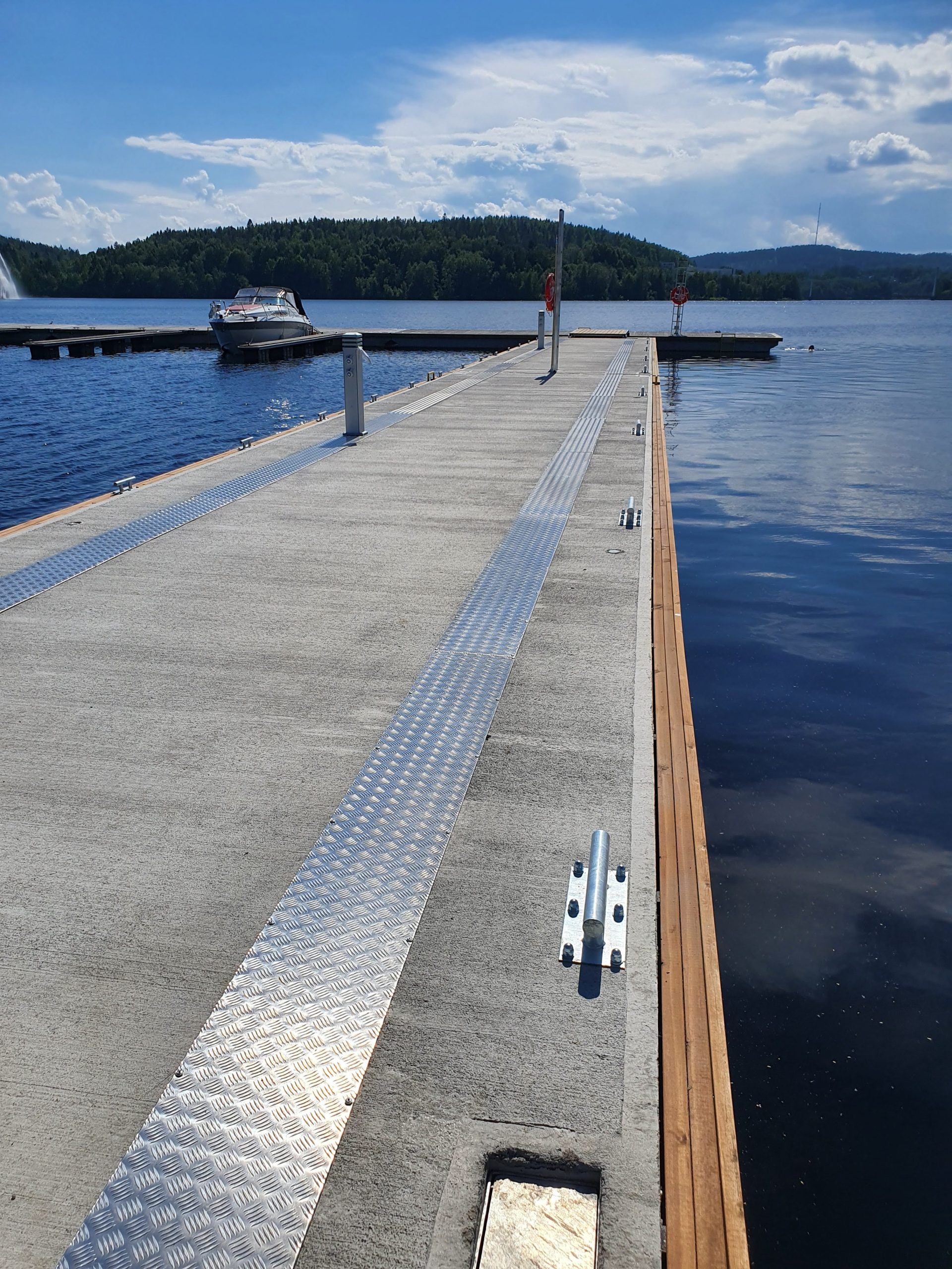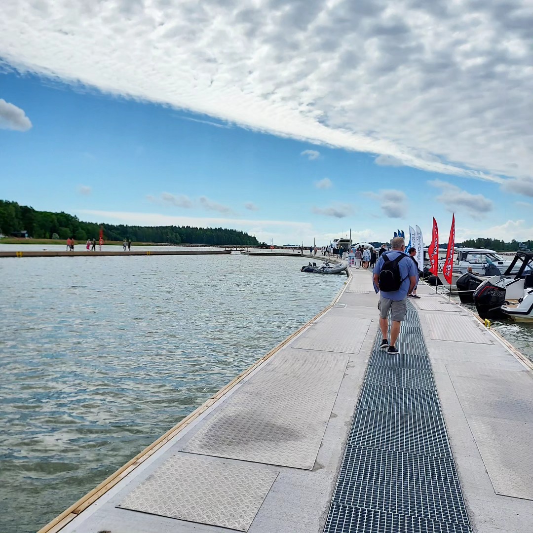 Ruokolahdelle suunnittelimme, valmistimme ja asensimme venesataman, jossa siivekkeellinen aallonvaimennin suojaa satama-allasta aalloilta. Aallonvaimenninponttonien korkeus on 1,6 m ja ponttonien pohjassa on siivekkeet, jotka auttavat aallonvaimennuksessa ponttonin leveyden, korkeuden ja massan kanssa.
