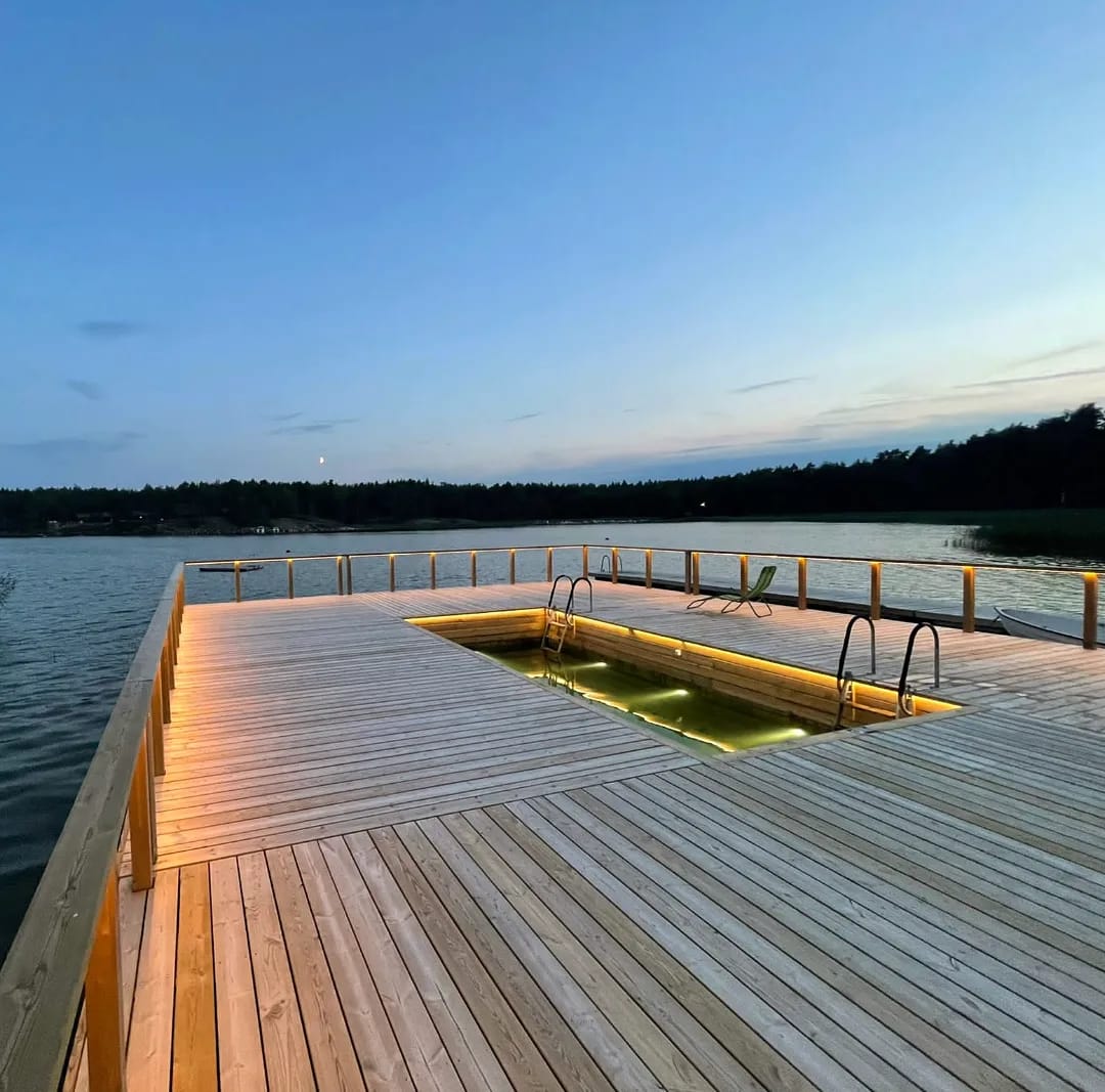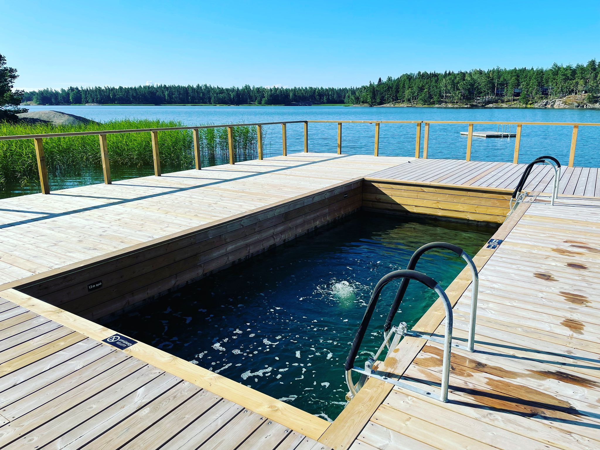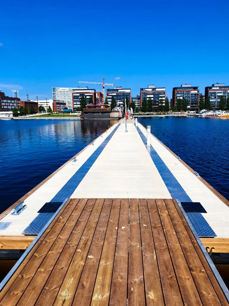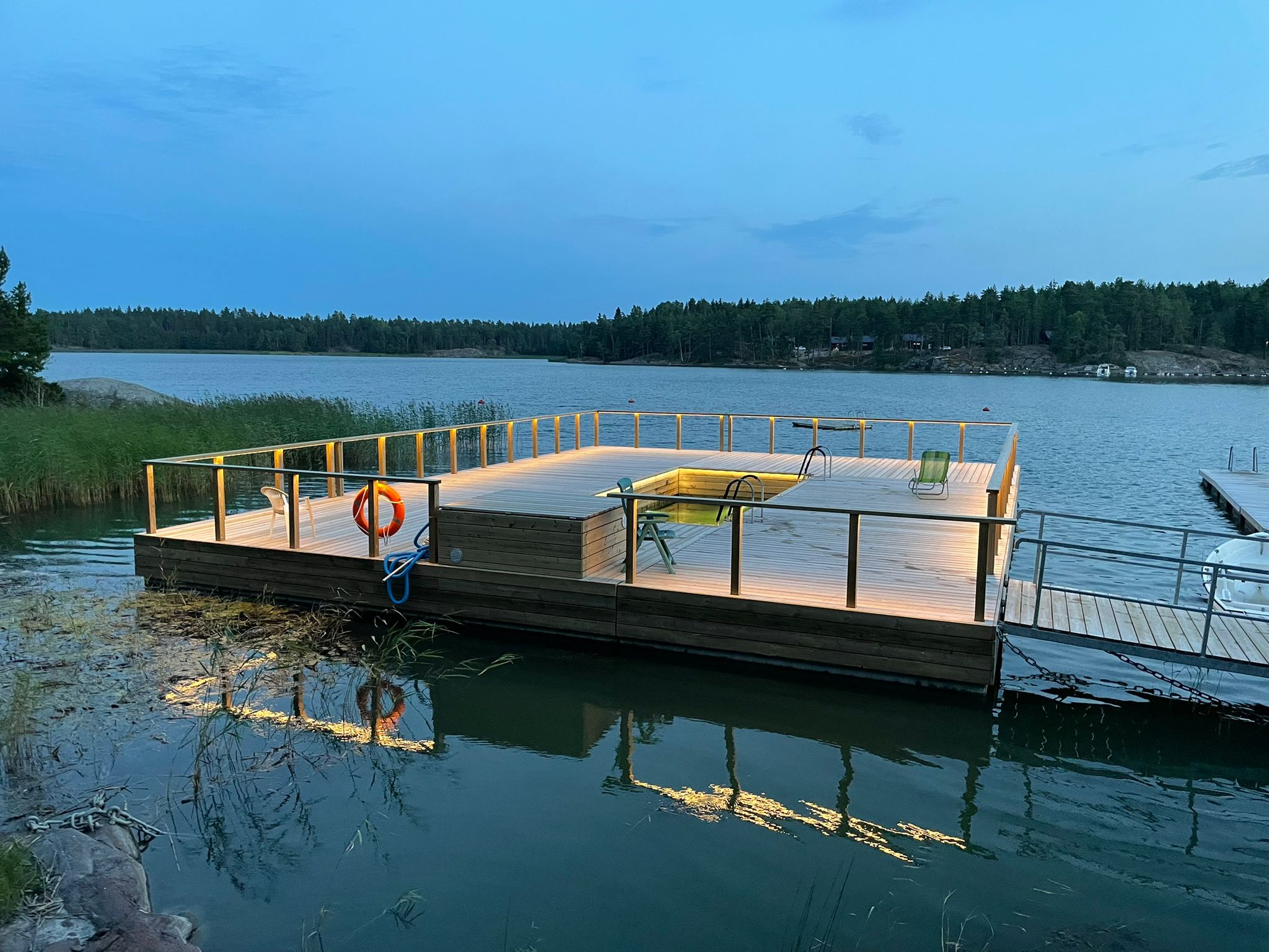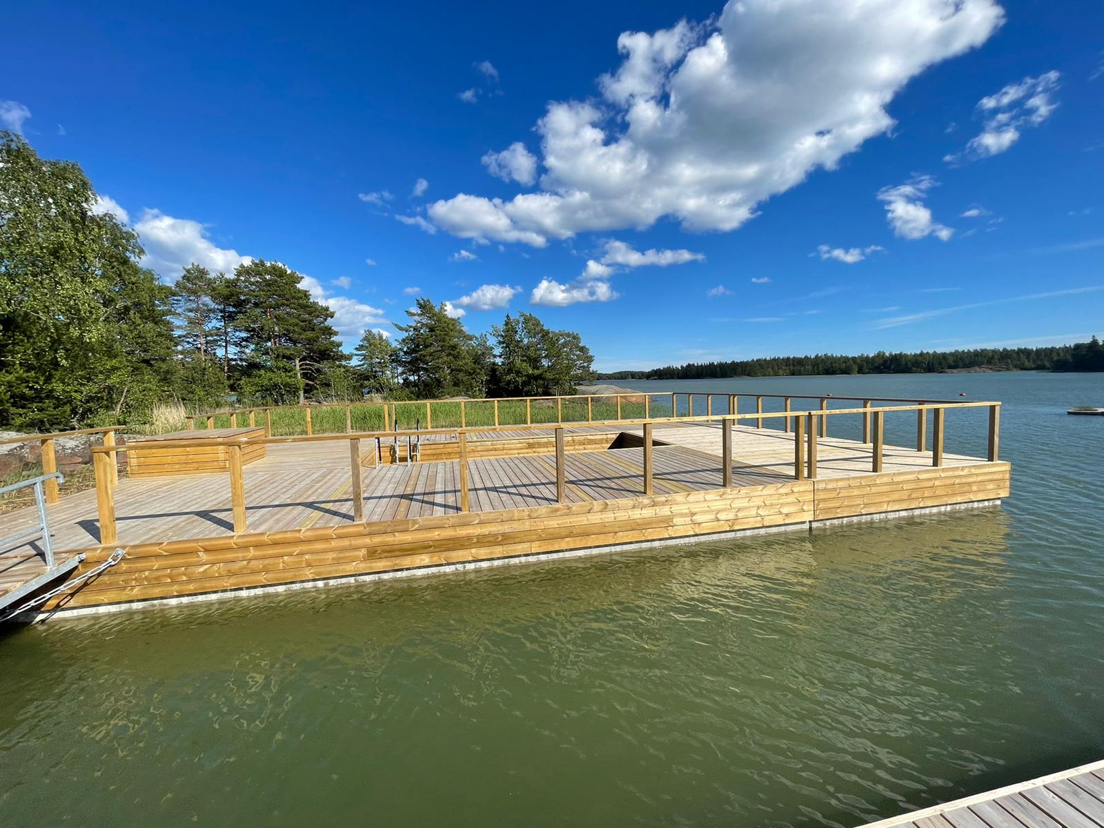 Loviisan asuntomessuille 2022 valmistimme ja asensimme kelluvan kadun kelluvien talojen tarpeisiin. Katu tehtiin kaarevaksi ja ambulanssin kestäväksi. Kadun päässä on ambulanssin kääntöpaikka. Kadun keskellä on tekniikkakouru, johon voidaan sijoittaa talojen vaatimat tekniikkaputket.