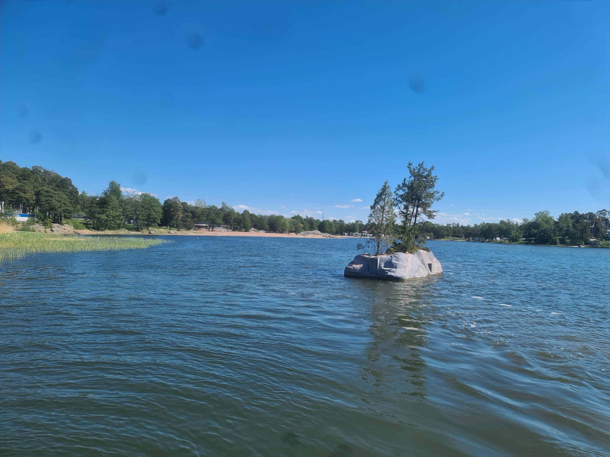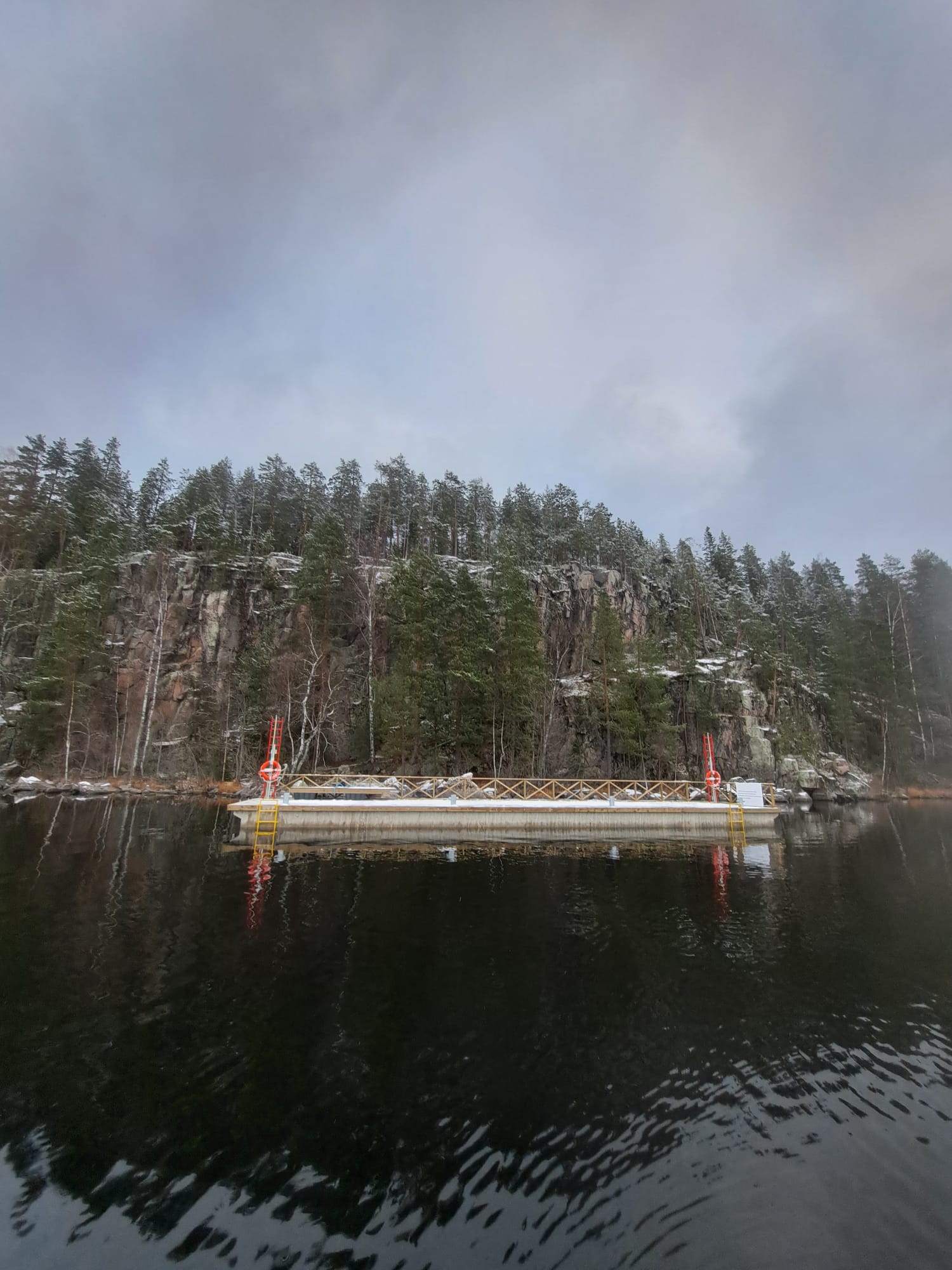 Teimme ponttoniperustuksen ja asensimme Raimo Saarisen Kelluva Saari taideprojektin Raumalla. Ponttonin päälle taiteilija teki kalliota jäljittelevän ulkokuoren.